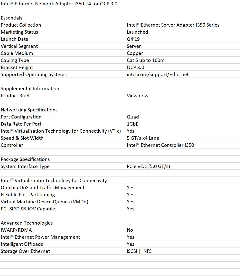 Card Mạng Intel Ethernet I350 - T4 Server Adapter - 4 Port 1Gb